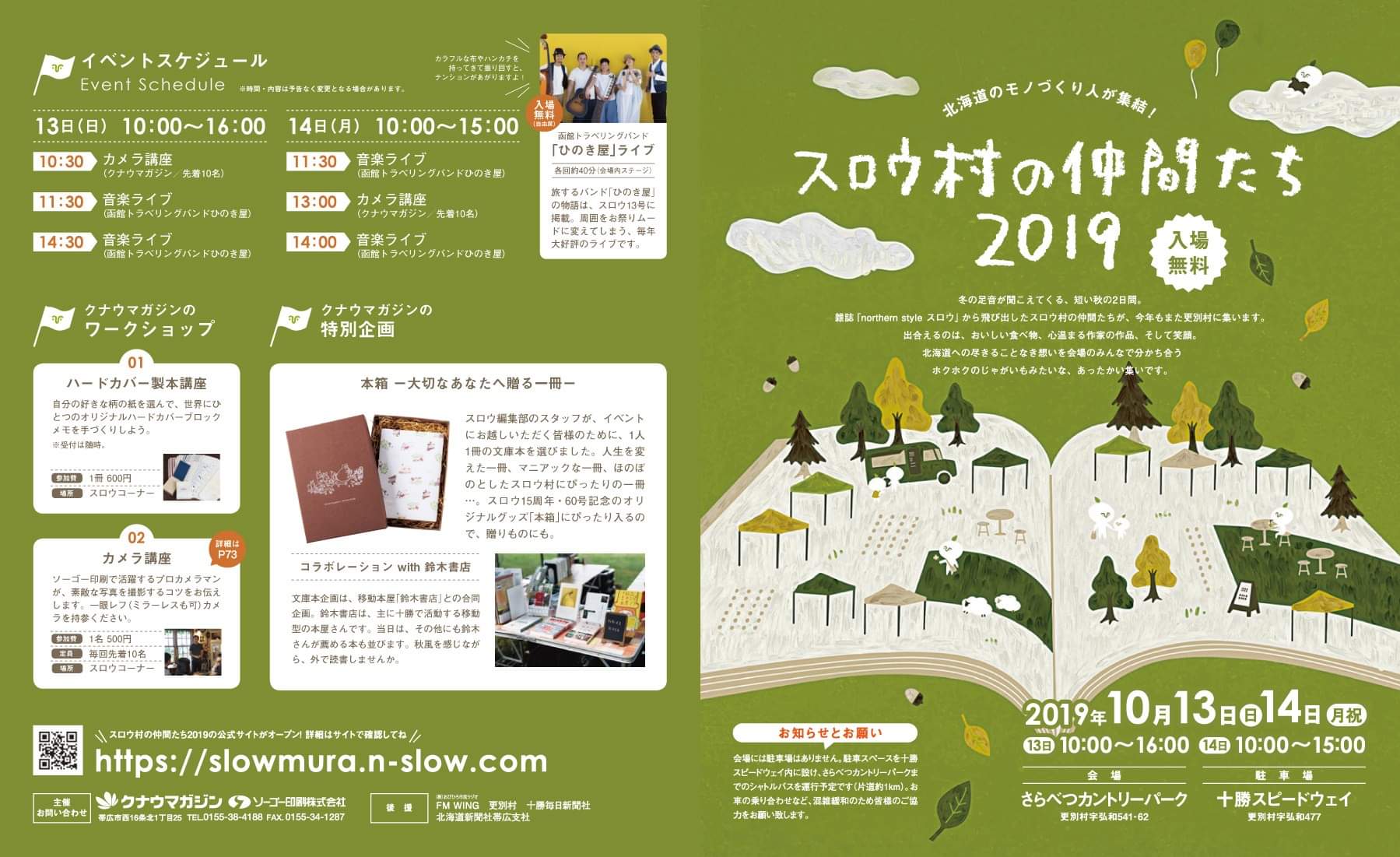 鈴木司 鈴木書店 おびひろ自主上映の会 On Twitter スロウ村の仲間たち 2019 に出店します 10月13日 日 10 00 16 00 10月14日 月 祝 10 00 15 00 更別村字弘和541 62 さらべつカントリーパーク スロウ 更別村